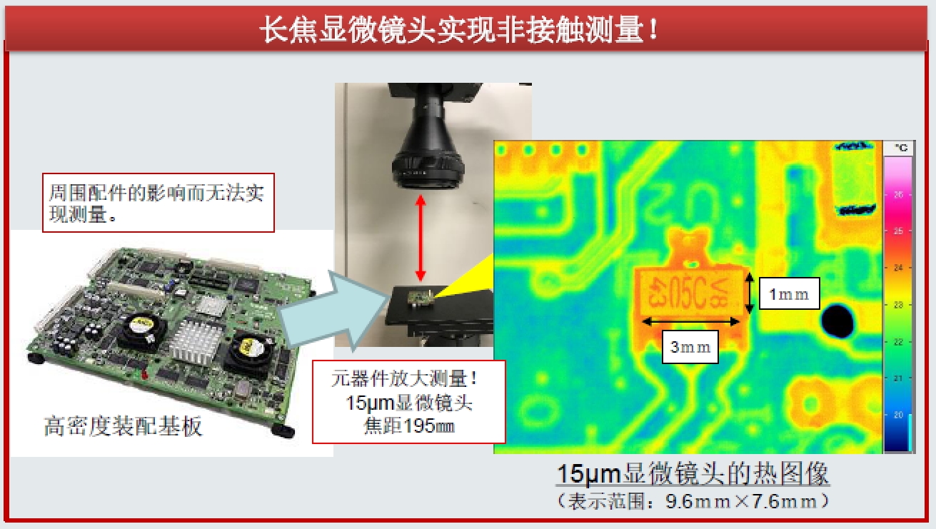 需要评价装配基板上的小型配件的发热时,因为过于细小而使用热电偶无法实现测量。配件装配过密镜头也无法捕捉。